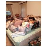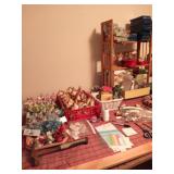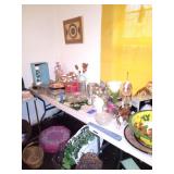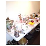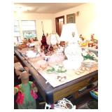 Bird figurines and statues, other statues and figurines, china sets, lunch sets, Christmas, Easter, Beads, crafting and sewing, sewing machines, fabric, linens, pillows, lots of throw pillows, rugs, vanity and perfume bottles,sterling vanity sets, Sterling flatware, jewelry, silver jewelry, costume jewelry some signed, dolls, plush animals, art,home decor,dressers, Asian room divider, pool table, coffee tables,wood rocking chair and double rocking chair for patio etc. books, cook books,