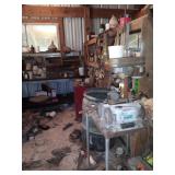 Doors,Windows, lumber, plumbing, fiberglass rolls, plywood,trim etc. Toilets,sinks,faucets,barb wire, plumping repair,carpentry tools, old store stock jeep parts, tools, gas hot water heaters, the outside has old bird cages some great for yard decor some still usable for parrots, nest boxes, Wrought Iron fencing and gates,old parrot stands,food bowls and more, garden tools,flower pots, repurposing things for garden art etc. If you are creative you should find some things to use.