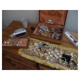 Antique oak cabinet with leaded, bevelled glass doors Antique burled wood game table with felt top Leather bound Missale Romanum c. 1910, superb condition Antique silver reliquary Tall antique oak cabinet/buffet with carved wood, 2 parts. Base is 55"w X 39"h Antique oak file w 18 drawers and tambour door King size bed w Serta mattress, raising foot and head, remote control Antique birch drop leaf table Refrigerator with freezer on bottom Whirlpool washing machine Electric dryer Whirlpool gas dryer Inspire cardio strider 40" Samsung flat screen TV 24" Philips flat screen TV 1878 23 Karat gold plated flatware service for 12 Antique European chandelier with 6 lights, has been rewired Antique brass fluid lamp chandelier, has been wired for electricity Beautiful mid-century cherry china cabinet Pair twin beds Lingerie chest with 5 drawers Kitchen table with 1 leaf and 4 chairs Dresser base with 9 drawers MCM nite stand w/ 2 drawers and key Bush TV stand/cabinet with glass doors Oak pedestal table End table w pink marble top Set of 6 matched dining chairs, Stanley Furniture Co., black upholstery Set of 6 bentwood chairs with cane seats and backs Area rugs, runners Large oriental hand knotted rug Coins, Eisenhower silver dollars, Kennedy half dollars Signed art Millefiori glass paperweight Large matchbook collection Antique blue & white porcelain vases Antique Belgian glass vases Meya tall square pottery vase Tii collections birds Pair Saturalux porcelain radiator humidifiers Majolica vase 4891 72 Majolica pot/bowl Czechoslovakia dessert set with coffee pot 1992 Bombay Co. Spring Blossom luncheon set Set of green ceramic cabbage plates and bowls (like Bordallo Pinheiro) Deruta blue porcelain dish/box Gerhardi 1712 silver coffee pot, sugar, and creamer set 16" Culinox copper oval au gratin Cornet 18/8 stainless tray Alboth Kaiser Bavaria berry bowl set Cut lead crystal bowls Costume jewelry Swarovski crystal bracelet Sterling jewelry, necklaces, rings, pocket watch Permobil ROTTO mosaic cushion w/ pump Pride Jazzy power wheelchair/scooter Smaller power wheelchair Aluminum wheelchair Mens clothes, name brands: Ralph Lauren Polo, Calvin Klein, Izod Women's clothes Vintage leopard fur coat Men's black leather sport coat Vintage Rejane mink fur pill box hat Large record collection DVD's and CD's Acu Rite digital rain gauge, new in package Shelves Patio table and chairs More Outdoor umbrella and stand I will update This list Monday nite
