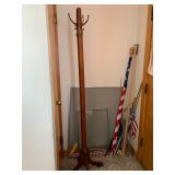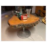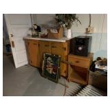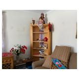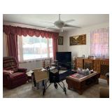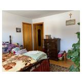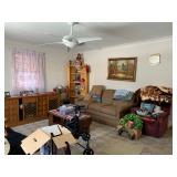 FURNITURE: Mid Century Bedroom set, Corner cupboard, Armoire, Bedroom dressers, 5 Pc. Kitchen set, Unique china cabinet, Unique oval coffee table, Oak coat rack, Couch, Wood slab table, Coffee table, Wicker rocker, Credenza, Recliner, and much more.