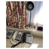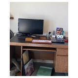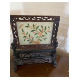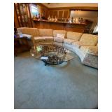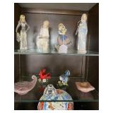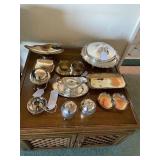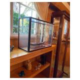END TABLES , DESKS, OCTAGON TABLE, ASIAN COFFEE TABLE WITH GLASS, TWO LIGHTED DISPLAY CABINETS