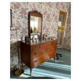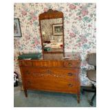 ANTIQUE HAND PAINTED DRESSER WITH MIRROR