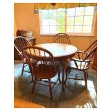 SMALLER ROUND OAK DINING SET WITH FOUR CHAIRS WITH EXTRA LEAF