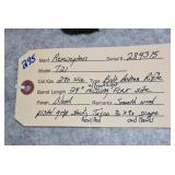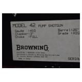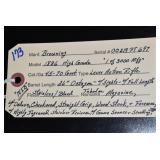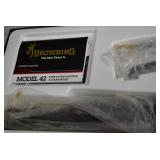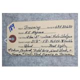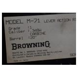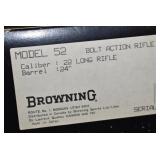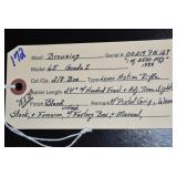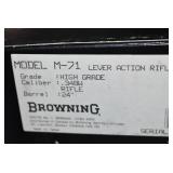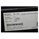 Firearms #171-390, U-Z, AA-CC – To Be Sold at 1:00 PM (Approx.): 171. Browning – Mod. 65 High Grade – 218 Bee Cal. Lever Action Rifle – w/24” Barrel w/Hooded Front & Adj. Rear Sights & Half Tubular Magazine – Stainless/Blued Finish – w/Highly Engraved Receiver w/Scrolling & Gold Inlaid Coyote & Bobcat – w/Deluxe Checkered Pistol Grip Wood Stocks – 1 of 1500 Mfg. in 1989 – Unfired w/Factory Box & Manual 172. Browning – Mod. 65 Grade 1 – 218 Bee Cal. Lever Action Rifle – w/24” Barrel w/Hooded Front & Adj. Rear Sights – Blued Finish – w/Pistol Grip Wood Stocks – 1 of 3500 Mfg. in 1989 – Unfired w/Box & Manual *Note: #171 & #172 Are Matching Serial #s – You can Keep the Set Together if you Elect 173. Browning – Mod. 1886 High Grade – 45-70 Gov’t Cal. Lever Action Rifle – w/26” Octagon Barrel w/Sights & Full Length Tubular Magazine – Stainless/Blued Finish – w/Highly Engraved Stainless Receiver w/Game Scenes & Scrolling w/Gold Inlaid Elk & Buffalo – w/Deluxe Checkered Straight Grip Wood Stocks w/Crescent Metal Butt Plate & Forearm Cap – 1 of 3000 Mfg. – Unfired w/Factory Box & Shipping Box 174. Browning – Mod. 1885 Grade 1 – 45-70 Gov’t Cal. Lever Action Rifle – w/26” Octagon Barrel w/Sights & Full Length Tubular Magazine – Blued Finish – w/Straight Grip Wood Stocks w/Crescent Metal Butt Plate & Forearm Cap – 1 of 3000 Mfg. – New w/Factory Box, Manual & Shipping Box *Note: #173 & #174 Are Matching Serial #s – You can Keep the Set Together if you Elect 175. Browning – Mod. 1886 High Grade Saddle Ring Carbine – 45-70 Gov’t Cal. Lever Action Rifle – w/22” Barrel w/Sights & Full Length Tubular Magazine – Stainless/Blued Finish – w/Highly Engraved Receiver w/Bear & Deer Scenes Inlaid in Gold – w/Deluxe Checkered Straight Grip Wood Stocks – 1 of 3000 Mfg. – New w/Factory Box & Manuals 176. Browning – Mod. 1886 Grade 1 Saddle Ring Carbine – 45-70 Gov’t Cal. Lever Action Rifle – w/22” Barrel w/Sights & Full Length Tubular Magazine – Blued Finish – w/Straight Grip Wood Stocks – 1 of 3000 Mfg. – New w/Factory Box *Note: #175 & #176 Are Matching Serial #s – You can Keep the Set Together if you Elect 177. Browning – Mod. 71 High Grade Rifle – 348 Win. Cal. Lever Action Rifle – w/24” Blued Barrel w/Hooded Front Sights & Rear Sight – Highly Engraved Stainless Receiver w/Deer & Elk Scenes – w/Checkered Pistol Grip Deluxe Wood Stocks – 1 of 3000 Mfg. – NIB 178. Browning – Mod. 71 Grade 1 – 348 Win. Cal. Lever Action Rifle – w/24” Barrel w/Hooded Front Sights & Rear Barrel Sight – Blued Finish – w/Smooth Wood Pistol Grip Stock – 1 of 3000 Mfg. – NIB *Note: #177 & #178 Are Matching Serial #s – You can Keep the Set Together if you Elect 179. Browning – Mod. 71 High Grade Carbine – 348 Win. Cal. Lever Action Rifle – w/20” Blued Barrel w/Hooded Front Sights & Rear Sight – Highly Engraved Stainless Receiver w/Deer & Elk Scenes – w/Checkered Pistol Grip Deluxe Wood Stocks 1 of 3000 Mfg. – NIB 180. Browning – Mod. 71 Grade 1 Carbine – 348 Win. Cal. Lever Action Rifle – w/20” Barrel w/Hooded Front Sight & Rear Sight – Blued Finish – w/Pistol Grip Wood Stock – 1 of 4000 Mfg. – NIB *Note: #179 & #180 Are Matching Serial #s – You can Keep the Set Together if you Elect 181. Browning – Mod. 1886 Grade 1 Saddle Ring Carbine – 45-70 Gov’t Cal. Lever Action Rifle – w/22” Barrel w/Blade Front & Adj. Rear Sights w/Full Length Tubular Magazine – Blued Finish – w/Straight Grip Wood Stocks – 1 of 7000 Mfg. – New w/Factory Box 182. Browning – Mod. 53 Deluxe Grade 1 – 32-20 Win. Cal. Lever Action Rifle – w/22” Barrel w/Sights – Blued Finish – w/Deluxe Capped Pistol Grip Wood Stocks – Only 5000 Mfg. – New w/Factory Box & Papers 183. Browning – Mod. 1885 High Wall – 38-55 Win. Cal. Single Shot Rifle – w/28” Octagon Barrel w/Globe Front & Adj. Rear Peep Sights – Blued Finish – w/Deluxe Checkered Straight Grip Wood Stocks w/Crescent Metal Butt Plate – w/Browning Scope Bases – Mfg. Between 1997-2000 – As New w/Factory Box & Manuals 184. Browning – Mod. 52 Sporter – 22LR Cal. Bolt Action Rifle – w/24” Barrel (No Sights) – Blued Finish – w/Deluxe Checkered Capped Pistol Grip Wood Stock w/Raised Cheek Piece – w/Detachable Magazine – 1 of 5000 Mfg. – New w/Factory Box & Manuals 185. Browning – Mod. 42 High Grade – 410ga. 3” Pump Action Shotgun – w/26” Full Choke, Vent-Rib Barrel w/Bead Sight – Blued Finish – w/Highly Engraved Receiver w/Gold Inlaid Pointer & Wild Fowl Scenes – w/Deluxe Checkered Capped Pistol Grip Wood Stocks – 1 of 6000 Mfg. Between 1991-1993 – New w/Factory Box & Manual 186. Browning – Mod. 42 Grade 1 – 410ga. 3” Pump Action Shotgun – w/26” Full Choke, Vent-Rib Barrel w/Bead Sight – Blued Finish – w/Deluxe Checkered Capped Pistol Grip Wood Stocks – 1 of 6000 Mfg. Between 1991-1993 – New w/Factory Box & Manual *Note: #185 & #186 Are Matching Serial #s – You can Keep the Set Together if you Elect 187. Browning – Mod. 12 Grade 5 – 28ga. Pump Action Shotgun – w/26” Mod. Choke, Vent-Rib Barrel w/Bead Sight – Blued Finish – w/Highly Engraved Receiver w/Gold Inlaid Pointer & Wild Fowl Scenes – w/Deluxe Checkered Capped Pistol Grip Wood Stocks – 1 of 7000 Mfg. Between 1991-1992 – New w/Factory Box & Manual 188. Browning – Mod. 12 Grade 1 – 28ga. Pump Action Shotgun – w/28” Mod. Choke, Vent-Rib Barrel w/Bead Sight – Blued Finish – w/Deluxe Checkered Capped Pistol Grip Wood Stocks – 1 of 7000 Mfg. Between 1991-1992 – New w/Factory Box & Manual *Note: #187 & #188 Are Matching Serial #s – You can Keep the Set Together if you Elect 189. Browning – Mod. A5 Magnum – 12ga. 3” Semi-Auto Shotgun – w/31 ½” Full Choke, Vent-Rib Barrel w/Double Bead Sights – Blued Finish – w/Scroll & Floral Engraving on 