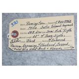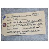 Firearms #391-604, DD-ZZ, AAA-VVV – To Be Sold at 10:00 AM (Approx.): 391. Winchester – Mod. 70 XTR Sporter Magnum – 264 Win. Mag. Cal. Bolt Action Rifle – w/24” Barrel (No Sights) – Blued Finish – w/Checkered Capped Pistol Grip Wood Stock w/Winchester Red Rubber Butt Pad – w/Scope Rings & Bases 392. Winchester – Mod. 67A – 22 Cal. Bolt Action Rifle – w/27” Barrel w/Sights – Blued Finish – w/Pistol Grip Wood Stock w/WRA Butt Plate 393. H. & R. Arms – 28ga. Single Barrel Shotgun – w/28” Barrel – Gray Finish – w/Ejector – w/Balled Pistol Grip Wood Stocks w/Factory Butt Plate – Patent Date of May 14, 1901 394. Winchester – Mod. 1890 – 22 Short Cal. Only Pump Action rifle – w/24” Octagon Barrel w/Sights & ¾ Length Tubular Mag – w/Straight Grip Wood Stock w/Metal Crescent Butt Plate & Ribbed Forearm 395. Remington – Mod. 12C – 22 Cal. Pump Action rifle – w/24” Octagon Barrel w/Sights & ¾ Length Tubular Mag – w/Correct Lyman Adj. Rear Tang Peep Sight – Brown/Gray Finish – w/Straight Grip Wood Stock w/Crescent Metal Butt Plate & Ribbed Forearm 396. J. Stevens – 22 Long Rifle Cal. Single Shot Rifle – w/22” Octagon to Round Barrel w/Sights – w/Non Factory Butt Plate 397. New England Firearms Co. – Mod. Long Range – 22 Cal. Single Shot Bolt Action Rifle – w/24” Barrel w/Sights – Brown Finish – w/Pistol Grip Wood Stock w/Grooved Forearm 398. Winchester – Mod. 68 – 22 Cal. Single Shot Bolt Action Rifle – w/27” Round Barrel (No Front Sight) w/Rear Barrel Sight – Blued Finish – w/Pistol Grip Wood Stock w/Factory Butt Plate 399. Remington – Mod. 41P The Target Master – 22 Cal. Single Shot Bolt Action Rifle – w/27” Hooded Front & Rear Peep Sights – Blued Finish – w/Pistol Grip Wood Stock w/Factory Butt Plate 400. Winchester – Mod. 1907 S.L. – 351 Self Loading Cal. Semi-Auto Rifle – w/20” Barrel w/Sights – Gray Finish – w/Round Knob Pistol Grip Wood Stocks w/Factory Butt Pad – w/Factory Clip 401. Kaba – Mod. Spezial-Prazisions-Karabiner – 9mm Cal. Single Shot German Bolt Action Rifle – w/24” Round Barrel w/Sights – Blued Finish – w/Pistol Grip Wood Stock – “Kaba Spezial” Stamped in Butt Stock 402. J. Stevens – Mod. 26-Crack Shot – 22 Long Rifle Cal. Single Shot Rifle – w/22” Round Barrel w/Sights – Blue/Gray Finish – w/Straight Grip Wood Stocks w/Factory Butt Plate 403. Mossberg – Mod. 320TR – 22 Cal. “Smoothbore” Single Shot Bolt Action Rifle – w/24” Barrel w/Sights – Blued Finish – w/Pistol Grip Wood Stock w/Factory Butt Plate 404. Winchester – Mod. 1897 – 12ga. Pump Action Shotgun – w/28” Mod. Choke Barrel – Re-Blued Finish – w/Round Knob Pistol Grip Wood Stock w/Factory Butt Plate & Ribbed Forearm 405. Remington – Mod. 760 Gamemaster – 300 Sav. Cal. Pump Action Rifle – w/22” Barrel w/Sights – Blued Finish – w/Pistol Grip Wood Stock w/Factory Butt Plate & Corn Cob Forearm – w/Correct Detachable Magazine 406. Stevens – Mod. 14 ½ Little Scout – 22 Long Rifle Cal. Single Shot Rifle – w/18” Barrel w/Sights – w/Straight Grip Wood Stocks w/Repaired Wrist 407. Remington – Mod. #6 Take Down – 32 Rim Fire Cal. Single Shot Rifle – w/20” Barrel w/Sights – w/Straight Grip Wood Stocks 408. Stevens – Mod. Crack Shot 26 – 32 Cal. Single Shot Rifle – w/18” Barrel – Matte Blue/Silver Finish – w/Straight Grip Flat Wood Stocks 409. Stevens – Mod. 11 Junior – 22LR Cal. Single Shot Rifle – w/20” Barrel w/Sights – Blued Finish – w/Straight Grip Flat Wooden Stock 410. Mauser – Mod. German Sporting Rifle – 8mm Cal. Bolt Action Rifle – w/24” Barrel w/Rifle Sights – Blued Finish – w/Checkered Balled Pistol Grip Wood Stock w/Raised Cheek Piece – w/Double Set Triggers – w/Scope Claw Mounting Bases 411. Armory Gun. Co. – 12ga. Single Barrel Shotgun – w/30” Barrel w/Bead Sight – Blued/Brown Finish – w/Balled Straight Grip Wood Stocks 412. J. Stevens – Mod. Favorite – 32 Long Cal. Single Shot Rifle – w/24” Octagon Barrel w/Sights – Blued/Brown Finish – w/Straight Grip Wood Stocks w/Factory Butt Plate 413. Winchester – Mod. 67A – 22 Cal. Bolt Action Rifle – w/27” Barrel w/Sights – w/Pistol Grip Wood Stock w/WRA Butt Plate 414. Karabiner – Mod. Training Rifle – 22/5.4mm Cal. Bolt Action Rifle – w/23” Barrel w/Sights – Blued Finish – w/Checkered Balled Pistol Grip Wood Stock w/Metal Butt Plate 415. Winchester – Mod. 25 – 12ga. Pump Action Shotgun – w/28” Full Choke Barrel w/Bead Sight – Blued Finish – w/Pistol Grip Wood Stock w/Recoil Pad & Ribbed Forearm 416. Ranger/Sears – Mod. 36-22 – 22 Cal. Bolt Action Rifle – w/24” Barrel w/Sights – w/Pistol Grip Wood Stock w/Detachable Mag – w/Mossberg #6 Scope Mount & Scope 417. Riverside Arms – 16ga. Hammerless Double Barrel Shotgun – w/30” Solid Rib Barrels w/Bead Sight – Blued/Gray Finish – w/Checkered Balled Pistol Grip Wood Stocks 418. Baikal – Mod. T0Z-17-01 – 22 Cal. Bolt Action Rifle – w/21” Barrel w/Hooded Front & Adj. Rear Target Sights – w/Pistol Grip Wood Stock – w/2 Detachable Magazines 419. Winchester – Mod. 67 – 22 Cal. Bolt Action Rifle – w/27” Barrel – Blued Finish – w/Pistol Grip Wood Stock – Side of Barrel Tapped (No Butt Plate) 420. Remington – Mod. 760 Gamemaster – 270 Win. Cal. Pump Action Rifle – w/22” Barrel w/Sights – Blued Finish – w/Pistol Grip Wood Stock w/Corn Cob Forearm – w/Detachable Magazine – w/See-Through Scope Mounts 421. Winchester – Mod. 1904 – 22 Cal. Bolt Action Single Shot Rifle – w/21” Barrel w/Sights – Blued Finish – w/Straight Grip Wood Stock w/WRA Butt Plate 422. Winchester – Mod. 47 – 22 Cal. Bolt Action Rifle – w/25” Barrel w/Sights – Blued Finish – w/Pistol Grip Wood Stock w/WRA Butt Plate – Side Receiver Tapped 423. Remington – Mod. 760 Gamemaste