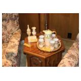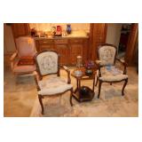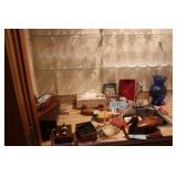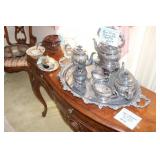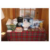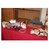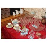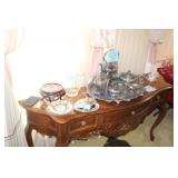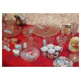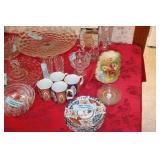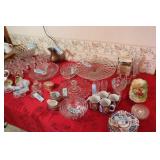 There is a very large selection of Fostoria. Asian Pottery, Display Cases. Dining room table and hutch. TV, and 3 stereos. Area rugs, couch and La-z-Boy Recliners. Artwork, mirrors.
