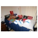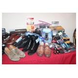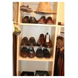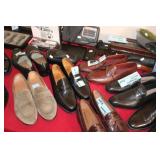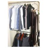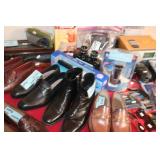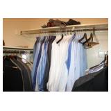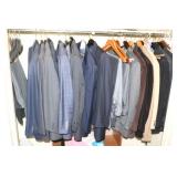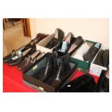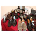 He has approx 40 men's suits and about 25 pair of shoes. Suits are from Brooks Brothers and Neimans. Some of them are new. He has Gucci, Allen Edmonds in brand name shoes. He also has about 100 new pairs of socks still with the tags from both Nordstroms and Brooks Brothers. The shoes are 9.5 -10. He has like new belts and ties.