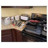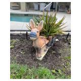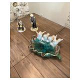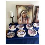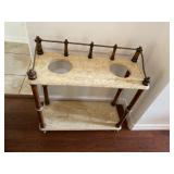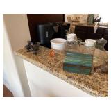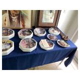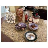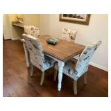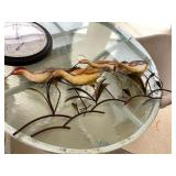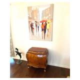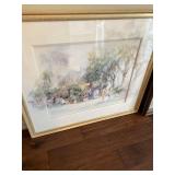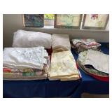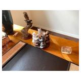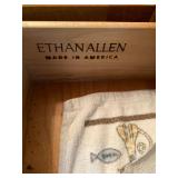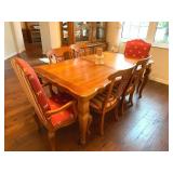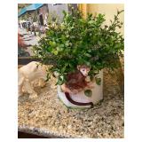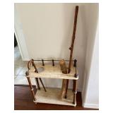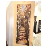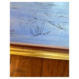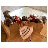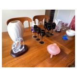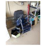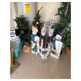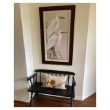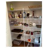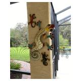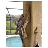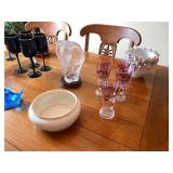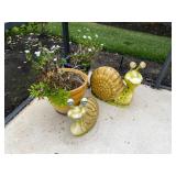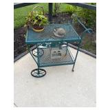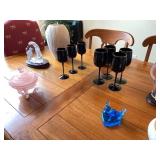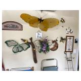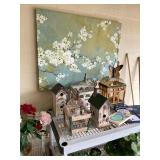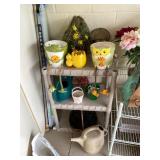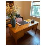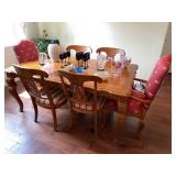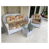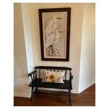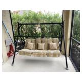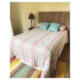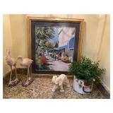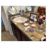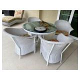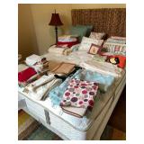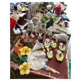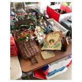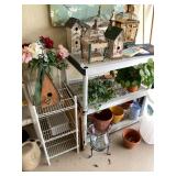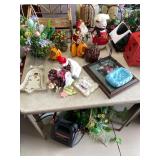 Very nice leather sofa, casual dining & dinette sets, lots of yard art, porch swing, wicker love seat, coffee table, chairs, & lounge, patio tea cart, armoire, end tables, 2 coffee tables, cedar chest, lamps, framed wall art, queen sea grass headboard, queen bed, TV armoire, prints & other wall art, silk plants & foliage, file cabinet, small chest, some linens & kitchenware