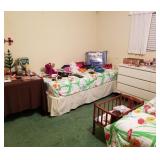 Full Estate, 3 BD 2 Car Garage. Some Items include Twin & Full BDroom furniture, Dining Room Table, Buffet, China Cabinet, MCM Thomasville Coffee Table. MCM Console table, and smaller size China Cabinet. Many Kitchen Items, Pot, Pans, Corning Wareware, Crystal including American Fostoria Round and Square Cake Plates, 3 China Sets includes Noritake 22KT trim, Kitchen Dinnett, Sofa & Love Seat, Reclining Rocker, Bedroom Furniture, Poka-Dot Fot Stools, Oil Painting, Many lamps including, Alabaster & Prisims, a Humidor, 1950 baby clothes, 1960 & 70 Games, Records, Army Toys, Tools and more. |
