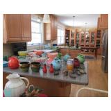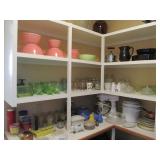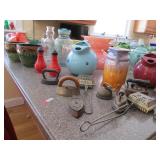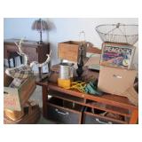 Vintage kitchen to include Pyrex pink blue green,Fire king, Depression glass,oak furniture,mission,arts n crafts,Kitchen aide mixer,paper weight collection,china glass ware,books books,gardening,fishing,Adirondacks,flytying,adventure,leathear sofa,couch,4 poster queen bed,two single beds,oak armoier,dressers,oak stands,advertising boxes,fly reels,creels,fishing net,desks,mirrors,lamps,carpets,rugs,pictuers,prints,hess toys,tools, |