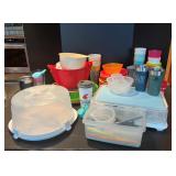 - Lot # 25 - Lot of Plastic Plates, Cups, Platters, Cake Holder & 2 Glass Water Bottles