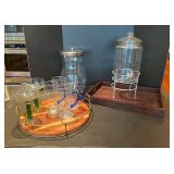 - Lot # 26 - Large Plastic Drink Dispenser, Class Drink Dispenser On Stand, Glassware & Wood Trays