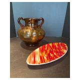 - Lot # 32 - Handblown Glass Vase & Glass Platter