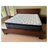 - Lot # 66 - King Size Wood Bedframe From Pottery Barn w/Sealy Premium Mattress & Box Spring