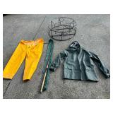 - Lot # 82 - Fenwick Fishing Rod, Crab Pot, Rain Jacket & Pants
