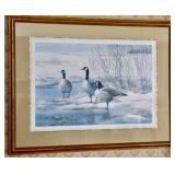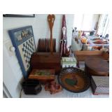 DUCK DECOYS AND OTHER CHICKS: Gdel faux scrimshaw duck trinket box Long neck swan 3 Jane Ruiker Canada goose decoys Unnamed Loon decoy 2 large wood decoys 1 trinket box from Decoy Shop Large rooster Wood Puffin 2 Wood chickens Metal duck Plastic Xmas duck Red ceramic duck Gail Downey laying chicken Folk art wood pig Cast iron Scottie dog door stop Cast iron pointer dog door stop Dcuk wood duck Stein plastic bunny Brass mouse figurine Puffin welcome sign 3 Cast iron chicken door stops