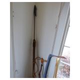 NOVELTY ITEMS: Antique snowshoes. Old Native American (Huron?) Indian wooden gut child’s snowshoes with red pom poms LARGE “Copper Pot” outdoor business signage Set of 4 LARGE wood outdoor rockers Antique 1870’s upright Waterbury Clock with brass pendulum and winding mechanism Antique Regulator clock 3 magnifying glasses S & H green stamp collection Agate bookend Set of stone composite mushroom bookends Austin sculpture of boy and girl Tin oil lamp with glass globe Ski boot decanter Byers figurines Jim Shore thanksgiving pilgrims Benedictine Town Crier Margarita Miller Thanksgiving figurines Pumpkin scarecrow Schmid Brothers figurine Old salt fisherman figurine Mudman figurine 4 S. Jouglass peasant figurines Leather camel with rider figure Large assortment of baskets: antique to contemporary