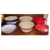 Assorted Silverplated pieces to include: Candlesticks Chafing dishes Domed butter server Wooden handled covered silent butler ashtray Covered Creamer Porcelain lined covered biscuit canister Wooden items including: Bread bowl, bread box, mortar and pestle, plastic-lined storage bowl with cover, serving tray and nut bowls. 2 sets of stainless steel nesting mixing bowls. White Kitchen aid mixer with accessories. 2 mid-century hand cranked ice crushers 2 wire mesh strainers 2 knives carving set Assorted sized cupcake, and baking pans including Bundt and tube pans Large cookie cutter collection: copper and tin. Assorted kitchen accessories: Slicers, and pastry tube set. Glass and plastic storage canisters, trays, canning jars. Assorted bottles – vintage collectible and contemporary 2 tiered chrome pie server Stainless steel fish steamer, 2 large salad bowls Napkin holders Pet water bowls Cheesecake springform pan with base and cover 5 piece crème Brule set Microwaveable hot plate Bodum French press Manual Apple peeler Large electric food warming tray 7 Early American stoneware jugs and crocs. Pair three-tiered mid-century wood serving trays. 8 wooden cutting and bread boards. Antique popcorn popper. Large assortment of blue and white design dinnerware: Royal Doulton Langdale Dinner, salad, dessert plates, cups and saucers, and salad bowls 48 piece Wedgewood dinnerware set in a Strawberry Hill pattern. Elegance fine bone china breakfast set service for 4- cups saucers and bowls. Queen’s Collection 6 pedestal coffee mugs in Hookers Fruit design. Large Italian made terracotta mugs and bowls. Assorted mugs, bowls, and plates.