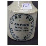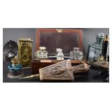 BHD Auctions LLC Presents Highlights – Mission Hall Seat, Mahogany Display Cabinet, Larkin Desk, Pottery, Primitives & Country Items, Old Store Coffee Bean Dispenser, Spice Cabinet, Coffee Bin, Carnival Chalkware, Viking Glass, Vintage Toys, Military and More! This is a timed auction with item 1 ending at 7PM on Thursday March 31 and an item ending every 10 seconds there after. Pickup of items is Friday 4/1 10AM to 1PM and 6PM to 7PM. Location 124 Primrose Alley Evans City, PA 16033. Go To www.bhdauctions.com To Bid Catalog: 1 Antique Mission Style Oak Hall Seat w/ Mirror 2 Antique Old Store Countertop Coffee Bean Dispenser by The Brundage Bros. Co. 3 Zograscope Stereo Optican Card Viewer Circa 1860's 4 Old Store Counter Top Highland Confections Hardie Brothers Pittsburgh Glass Display Unit w/ Glass Dividers 5 Primitive 11 Drawer Spice Cabinet 6 Primitive Wood Wall Hanging Salt Box 7 Stoneware Blue & White Decorated Tea Crock 8 Rome Copper Kettle 9 Dove Tail Copper Pot w/ Iron Handle 10 Trade Mark Lightning Fruit Jar Putnam 105 11 2 Buffalo Lithia Springs Water Glass Bottles 12 Tin Candle Lantern 13 Oil Lamp w/ Tin Holder (lamp is cracked) 14 Ornately Carved Wood Bellows 15 Large Tole Painted Serving Tray 16 Large Deep Well Mirror w/ Gold Paint 17 Bennington Pottery Dog Biscuit Jar 18 Large Peanut Pattern Clear Glass Oil Lamp 19 Pottery Vase w/ Marble Glaze 20 Pair Roseville Pottery Clematis Flower Frogs 21 Roseville Pottery Montacello Double Handle Vase 22 Unusual Art Glass Vase 23 2 Hand Woven Rye Baskets 24 Old Store Tucker Alarm Till 503 Cash Register Box 25 Stereo Optican Rotating Viewer Box - Not Complete 26 Star Blue Glass Hardens Hand Grenade Fire Extinguisher 27 Framed Folk Art Pastel Country Road Scene Signed Fred G Kimmich 1910 28 2 Framed Pages Vanity Fair - "Clapham" Spy and Ape? "Cuthbert" 29 Framed Lake Scene Oilette 30 4 Old Bottles 31 Wilson Spice Co. Roasted Coffee Wood Bin w/ Tin Panels 32.5x21.5x19.5 32 Wood and Glass Display Cabinet On Wheels 33 Primitive Wood Bench 34 Copper and Zinc Still Parts 35 2 Old Brass or Copper As Found Kettles 36 2 Large Wood Block Pulleys 37 Double Door Mahogany Display Cabinet 38 Modern Corner Cabinet 39 Antique Oak Larkin Desk w/ Drop Front Writing Surface, Pigeon Hole Bins, Mirror, Applied Carving 40 Modern 3 Section Bamboo Folding Screen 41 Leaf Decorated Salt Glaze Pottery Umbrella Holder 42 Roseville Normandy Pottery Jardinière and Pedestal 43 Roseville Pottery Columbine Double Handle Vase Circa 1940 44 Roseville Pottery Pinecone Matched Pair Bookends Circa 1931 Original Sticker 45 Roseville Pottery Snowberry Double Handle Vase Circa 1943 46 Roseville Pottery Pinecone Double Branch Handle Vase 1931 47 Roseville Pottery Thorn Apple Double Handle Vase Circa 1930's 48 Roseville Pottery Pinecone Double Branch Handle Vase 1931 49 Roseville Pottery Pinecone Double Branch Handle Vase 1931 50 2 Roseville Pottery Carnelian Vases (1 has small chip on handle) Circa 1910-15 51 Arts & Crafts Hammered Copper Pitcher 52 Revere Rome NY Copper Vase 53 The Philabrasgo Copper Fire Extinguisher Pittsburgh Lamp, Brass & Glass Co. 54 12 Gallon Crown w/ Crown - Hairline Crack 55 2 Gallon Crock w/ Star 56 Hamilton Printers Type Drawer 57 Cast Iron Kettle 58 3 Carnival Chalkware Figures - Dog Hula Dancer and Girl w/ Bagpipes 59 4 Carnival Chalkware Pieces - Donald Duck, Dutchgirl, Girl w/ Navy Cap 60 4 Pieces Carnival Chalkware - Soldier, Siamese Cat, Horse, Dog 61 4 Pieces Carnival Chalkware - Dogs and Majorette 62 Carnival Glass Vase - Small on Chip Underside of Ripple 63 Sterling Silver Based Glassware 64 Fiesta Pitcher and Plates 65 Pyrex Glass Bowls and Glasbake Mugs 66 Assorted Rubber Vehicles 67 Quantity Tin Noise Makers 68 American Airlines DC7C N4070A Tin Battery Op Airplane 69 J Chein & Co. Key Wind Tin Litho Roller Coaster w/ Car 70 Assorted Tin Toys 71 5 Vaseline Juice Glasses 72 Dog Candy Container, Corn Syrup Bottle and Other 73 Framed Painted Metal Genuine Sweet Cuba Fine Cut Always Fresh Tobacco Sign 74 Primitive Wood Box 75 Ginger Bread Mantle Clock 76 Antique Buggy Candle Lantern 77 Unusual Clear Glass Oil Lamp 78 Primitive Wood Caddy 79 12 Part Tin Candle Mold - Rusted 80 Carved Wood Eagle Plaque 81 Painted Metal Bird and Leaf Display Piece 82 Oak Key Wind Regulator Wall Clock 83 Composition Goose Decoy 84 Pair Wrought Iron Bird Motif Wall Racks 85 Early Childs Buggy - In Need of TLC 86 Primitive Bench In Paint 87 Early Plank Seated Chair In Paint 88 As Found Copper Kettle 89 Copper Corner Sink 90 Animal Hyde Stretcher Boards 91 Handmade Large Doll House w/ Furnishings 92 93 94 95 007 Pinback Button, Dick Cap Gun, Metal and Plastic Figures and More 96 Costume Jewelry Bracelets 97 Assorted Clip On Earrings 98 Assorted Earrings 99 Assorted Costume Jewelry Necklaces 100 4 Pieces Carnival Chalkware - Indians, Clown, Cowboy 101 5 Pieces Carnival Chalkware - Cats and Dogs 102 4 Pieces Carnival Chalkware - Sailors and Babies 103 104 105 106 107 108 109 2 Roseville Pottery Carnelian Vases Circa 1910-15 110 Roseville Pottery Carnelian Planter and Wall Pocket Circa 1910-15 111 Roseville Pottery Raymor Tray, Cup and 2 Covered Ramekins - Tray Has Chip and 1 Lid Has Hairline Crack On Handle 112 Roseville Pottery Fuchsia Double Handle Vase 1939 113 3 Oriental Vases Including Satsuma 114 Pair Italian Majolica Pottery Vases w/ Pixies 115 Goebel West Germany Covered Casserole 116 Roseville Pottery Peony Large 18" Double Handle Vase - Base Repair 117 Brass Signal Lantern w/ Red Lens 118 Bausch & Lomb Microscope 119 2 Glass Ink Wells - 1 Lid Possibly Sterling Silver 120 2 Ink Wells - Cast Dog and Cast Metal "Pen Is Mightier Than The Sword" (lid is not right) 121 Brass Ink Well Geschutz, Silverplate Ink Well w/ Cobalt Liner Nappin & Webb's Plus 3 Ink Bottles 122 Antique Mahogany Lap Desk 123 Paint Decorated Metal Teapot 124 Golden Key Pepper and Brindley's Mixture Pipe Tobacco Advertising Tins 125 Jamestown 1607-1907 Tin Lithograph Plate - Vienna Art Plat