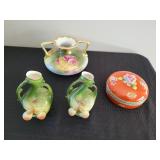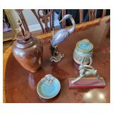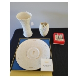 Thomasville Double Pedestal Inlay Dining Table and Chairs Antique Expandable table with barley twist legs and ladder back rush seat chairs Vintage Wingback chairs Queen Anne feet Schmieg & Kotzian Pie Crust Flip Table Vintage Secretary Desk Hutch by Pennsylvania House U.S Uncirculated Carson City Morgan Silver Dollars, NGC graded U.S. Morgan Silver Dollars, Binion Collection Morgan Silver Dollars Fine Gold and Silver Jewelry, Costume Jewelry, Tribal Signed Jewelry, Akoya Pearls Waterford, Lalique crystal, Lenox Lladro Spain Department 56 Snowbabies Collection Brass large Unicorn Sculpture Vintage Elvis Record and The Beatles Record 45's Collection Sterling Silver Flatware and more Vintage Whale teeth Scrimshaw signed Dias and more Vintique porcelains Greece, France, Italy, Ireland and more US M8 war knife and scabbard, Model CB9 cal 9mm Cobra Derringer, Mossberg 142-A Vintage toys 1950s,1960s Movie Lobby Cards collection Linda Le Kniff Signed Numbered Seriolithographs R.J Hohimer Signed Lithographs Hand woven oriental rugs 4 scene English hunting prints custom framed number signed by artist Antique pottery and vintage Pyrex Cast iron antiques, Brass ships bell Manchu China Narumi Set