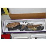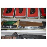 Sterling Silver, Franklin Mint Sterling Ornaments, Sterling Flatware, Cast Banks, Various Mantel & Other Clocks, Carnival Glass, Art/Ribbon Glass, Mesonic Paper Weights, Other Mesonic Items, Lot Pottery Crocks w/Blue, Lot Salt & Pepper Shakers, Cookie Jars, Case Pocket Knives, Lot Other Pocket & Collectable Knives, Lot Trays of Costume & Other Jewelry, Lot Winross Collectable Trucks, Danbury Mint Corvette Cars, Large Selection of Pad Locks, Lot Framed Prints, 4 Very Unusual Prisoner Made Items Including: A Tiger, A Pineapple, Birds in a Cage and a Deer (Must See), Tobacco Tins, Pipes, Collection of Holofoil Marvel Trading Cards, Comic Books, Powder Horns, Cast Americana Figures, Lenox Dishware, Lot Little Big Books, Decoys, Lot Trays of Boat and Fishing Advertising from 60’s and 70’s, Donnie & Marie Osmond Collectables, Duck & Goose Calls, Lot Zane Grey Books, Winchester Collectable Items, Desk Top Cannon, Large Selection of Porcelain Tea Pots, Collection of Glass Fish Figurines, Miniature Apple Jar, Quilts, Advertising Boxes, Snow Shoes, Lot Pottery Jugs, Animal Traps, Old Bottles, Bennington Pottery, Oyster Tins, Lot Castware, Cast Tractor Seats, Lot Tinware, Glass Cracker Jars, Woodware, Pottery Chicken Waterers, Gone with Wind Lamp, Old Carpenters Tools, Vintage Mache Halloween Pumpkins, Dove Tailed Boxes, Lot Miniature Figurines, Milk Glass, Butcher Knives, Cast Door Stops, Old License Plates, Various Lot of Older Shotguns & Antique Rifles, Large Lot of Box Lots, 2 Bow Front China Closets, Storage Cabinets, Miniature Rockers, Cedar Closet, Wooden Book Shelves, Large Blue Oriental Carpet, Wooden Benches, Very Nice Lot of Oak Side Chairs, Toro Snow blower, & Much More!