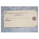 ABSENTEE BIDS AND PHONE BIDS WILL BE ACCEPTED up to 5 P.M of the Friday preceding the sale unless we have given you prior authorization. In the event of duplicate bids, the first bid received will take precedence. All sales are final and the outstanding balance must be paid in full immediately. Items/Lots MUST be inspected before leaving your absentee bid. Note: Absentee Bids CANNOT be cancelled the day of the sale