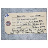 70. Remington – Mod. 504 – 22LR Cal. Bolt Action Rifle – w/21” Barrel (No Sights) – Blued Finish – w/Checkered Capped Pistol Grip Wood Stocks w/Factory Butt Plad – As New w/Box & Manuals