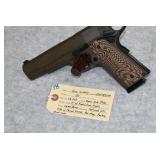 33. Springfield – mod. 1911-A1 “Range Officer” – 45 Auto Cal. Semi-Auto Pistol – w/5” Stainless Barrel w/Blade Front & Adj. Rear Sights – Carbon Steel Finish – w/Diamond Checkered Wood Grips – w/2 Mags – New w/Factory Hard Case, Lock & Manuals