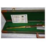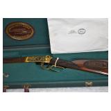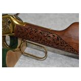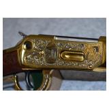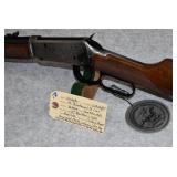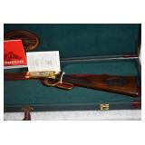 3. Winchester – Mod. 1894 Grade 1 – Centennial 1894-1994 Commemorative – 30 WCF Cal. Lever Action Rifle – w/26” Octagon to Round Barrel w/Blade Front & Buck Horn Rear Sights w/Half Length Tubular Magazine – Blued Finish – w/Engraved Receiver w/Game Scenes on Both Sides – w/Deluxe Checkered Capped Pistol Grip Wood Stocks w/Crescent Metal Butt Plate – Only 12000 Mfg. in 1994 – New w/Factory Box, Sleeve & Shipping Box