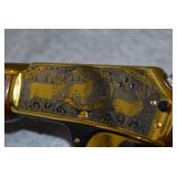 15-1. Colt – Mod. Single Action Army – 1961 125th Anniversary Commemorative – 45 Colt Cal. Single Action Revolver – w/7 ½” Barrel w/Blade Front Sight – Blued/Gold Washed Finish – Master Engraved by J. Westby Gibson w/Scroll & Floral Pattern – w/Colt Medallion Wood Grips – w/Correct Colt Presentation Case & Colt Key Fob