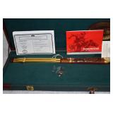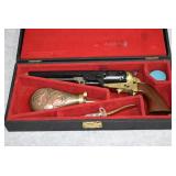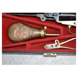 A. Pair of Colts – Mod. 1860 Army’s – “1777-1977 US Cavalry Commemorative Set” – 44 Cal. Black Powder Percussion Revolvers – w/8” Barrels w/Blade Front Sighs – Case Colored/Blued/Brass Finishes – w/Walnut Grips – Unfired w/Detachable Shoulder Stock, Powder Flask, Bullet Mold, Cap Box, Wooden Display Case & Brass Plate – The Guns & Shoulder Stock Are All Serial #175, Only 3020 Were Estimated to be Made But Not All Were Shipped