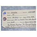 4. Winchester – Mod. 94 – Centennial 66 Commemorative – 30-30 Win. Cal. Lever Action Rifle – w/26” Octagon Barrel w/Blade Front & Buck Horn Rear Sights w/Full Length Tubular Magazine – Blued Finish w/Gold Receiver & Butt Plate – w/Straight Grip Wood Stocks – New w/Factory Box & Papers, Missing Sleeve to Box