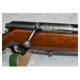 77. Winchester – Mod. 75 Target – 22LR Cal. Bolt Action Rifle – w/28” Barrel w/Hooded Front Sight & Lyman Rear Peep Sight – Brown/Gray Finish – w/Smooth Wood Pistol Grip Stocks w/Hard Metal Butt Plate – w/Adj. Forend Palm Position Stop – w/Factory 10Rd Mag – Side Tapped