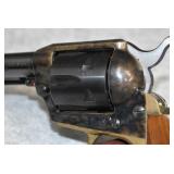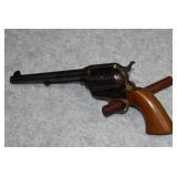 B. A. Uberti – Mod. Cattleman 1873 – 22/5.5mm Braddocks Air Cartridge System Steel Air Cartridge Gun – w/3 ½” Barrel w/Blade Front Sight – Case Colored/Blued Finish – w/Smooth Birds Head Wooden Grips – w/Factory Box & Papers