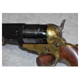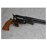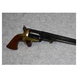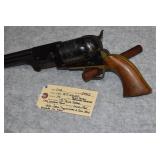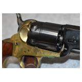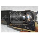 B-1. A. Uberti – Mod. Patterson (No Load Lever) – 36 Cal. Black Powder Percussion Revolver – w/7 ½” Barrel w/Blade Front Sight – Blued/Case Colored Finish – w/Horse & Carriage Scene Engraved on Cylinder – w/Smooth Wood Grips – New w/Factory Box
