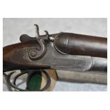 TTTT. Mears Arms Co. – 12ga. Hammer Double Barrel Shotgun – w/30” Barrel w/Front Bead Sight – Gray/Brown Finish – w/Checkered Wood Round Knob Pistol Grip Stocks – Note: Grip Cracked & Loose