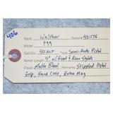406. Walther – Mod. P99 – 40 S&W Cal. Semi-Auto Pistol – w/4” Barrel w/Front & Rear Sights – Matte Blued Finish – w/Stippled Pistol Grip – w/Extra Mag – As New w/Hard Case