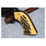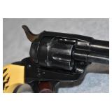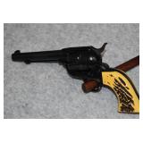 B. A. Uberti – Mod. Cattleman 1873 – 22/5.5mm Braddocks Air Cartridge System Steel Air Cartridge Gun – w/3 ½” Barrel w/Blade Front Sight – Case Colored/Blued Finish – w/Smooth Birds Head Wooden Grips – w/Factory Box & Papers