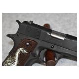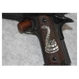 426. High Standard – Mod. 1911-A1 – 45 ACP Cal. Semi-Auto Pistol – w/5” Barrel w/Front & Rear Sights – Blued Finish – w/Checkered Wood Grips w/Rattlesnake on Both Sides – w/Mag