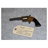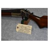 38. J. Stevens – Mod. Favorite – 25 Stevens Cal. Single Shot Rifle – w/24” Octagon Barrel w/Beech Combo Front Sight & Rear Barrel Sight – Blued Finish – w/Smooth Wood Straight Grip Stock w/Factory Butt Plate – w/Rear Receiver Tang Adj. Peep Sight – Great Original Condition Gun w/Great Sights