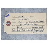 438. Stevens – 12ga. Single Barrel Single Shot Shotgun – w/29” Barrel w/Front Bead Sight – Brown Finish – w/Smooth Wood Pistol Grip Stocks – Note: Chipped Wood at Pistol Grip