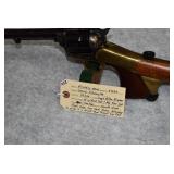 B-1. A. Uberti – Mod. Patterson (No Load Lever) – 36 Cal. Black Powder Percussion Revolver – w/7 ½” Barrel w/Blade Front Sight – Blued/Case Colored Finish – w/Horse & Carriage Scene Engraved on Cylinder – w/Smooth Wood Grips – New w/Factory Box