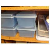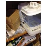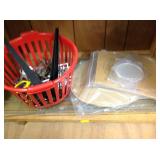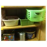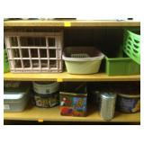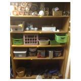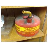 Contents of 3 shelves: Eagle gas can, Ball canning