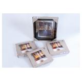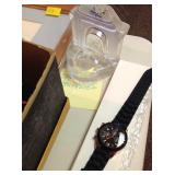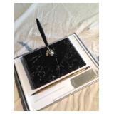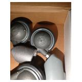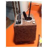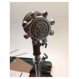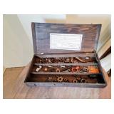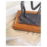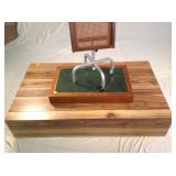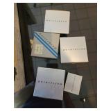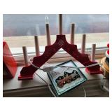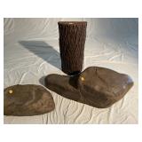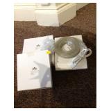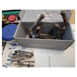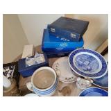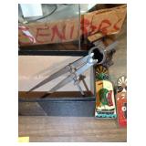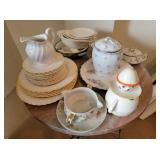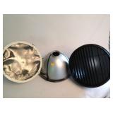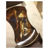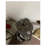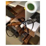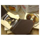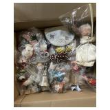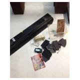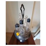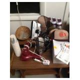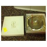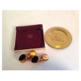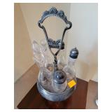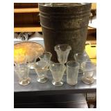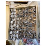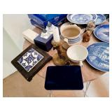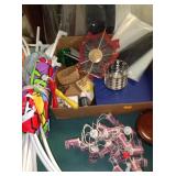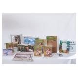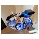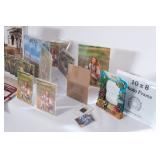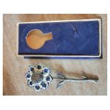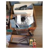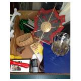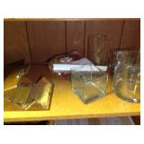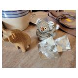 crystal pyramid paperweights, Leonard silverplate cordials, Dreft style Eleseva flower shaker, tea tile, figurines, chamberstick, misc 124