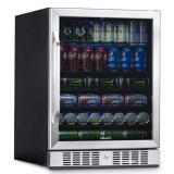 (136)NewAir Large Beverage Refrigerator Cooler with 177 Can Capacity - Mini Bar Beer Fridge with Reversible Hinge Glass Door And Bottom Key Lock - Cools to 34F - Stainless Steel ABR-1770