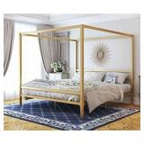 DHP Modern Canopy Bed with Built-in Headboard - King Size Gold