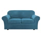 Real Velvet Plush 3 Piece Stretch Sofa Covers Couch Covers for 2 Cushion Couch Loveseat Covers (Base Cover Plus 2 Individual Cushion Covers) Thick Soft Stay in Place (Medium Sofa, Peacock Blue)