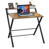 Folding Desk No Assembly Required, 2-Tier Small Computer Desk with Shelf Space Saving Foldable Table for Small Spaces, Espresso