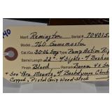 443.  Remington – Mod. 760 Gamemaster – “5 Diamond” – 30-06 Cal. Pump Action Rifle – w/22” Barrel w/Rifle Sights – Blued Finish – w/Checkered Capped Pistol Grip Wood Stocks – w/Clip – w/Tasco 4x Scope – w/Weaver Mounts