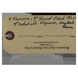 Redding Auction Service Inc. establishes no warranties or depictions concerning the fitness for use, safeness to fire, to store, or reliability of any firearm, ammunition, parts, parts of components of any lot.  Any use is entirely at your risk.  Redding Auction Service Inc. expressly disclaims any liability whatsoever for accident, injury or damage resulting to any person or property from the use or storage of any such lot.
